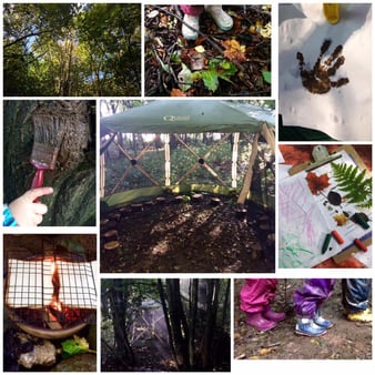 in the woods at our forest school sessions. There was loads of mud play, bug hunting, leaf and tree rubbing, hammering, drilling, whittling wood and clay creature making. Plenty big smiles